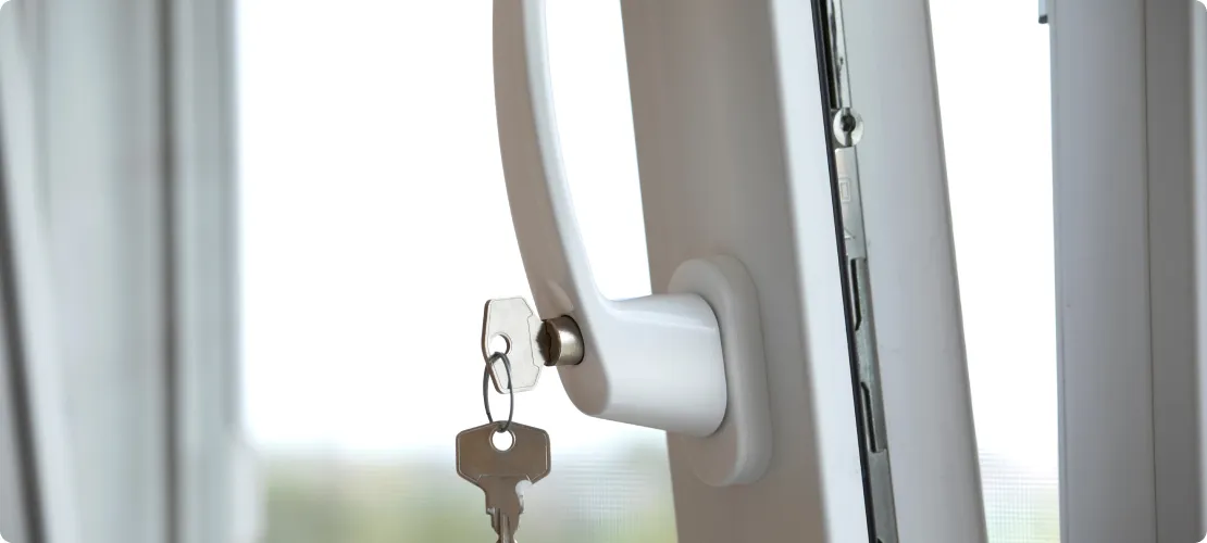 - ручкой с замком на пластиковые окна – при повороте ключа створка полностью блокируется и ее невозможно открыть;