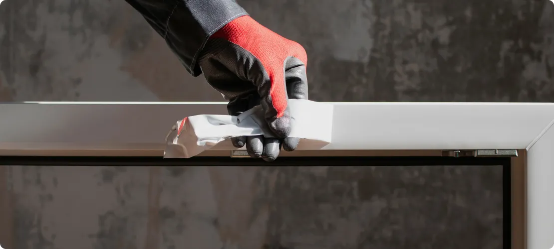 - Помойте ПВХ-окно с помощью любого мягкого раствора и протрите тряпкой.