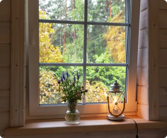 Часто используются в домах из деревянного бруса, даже если в них установлены ПВХ-окна. Это позволяет оформить интерьер в единой стилистике. Среди «плюсов» дерева: