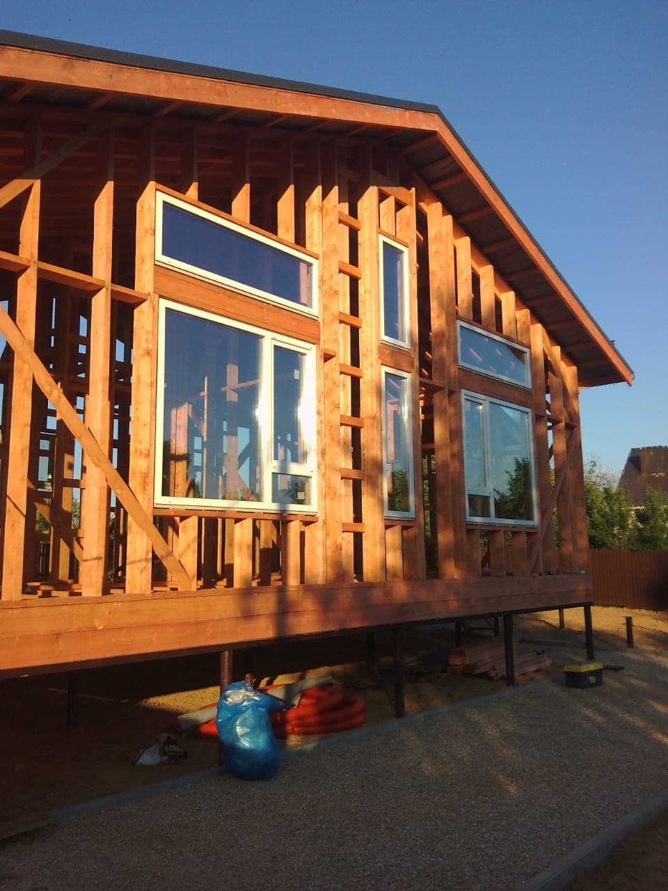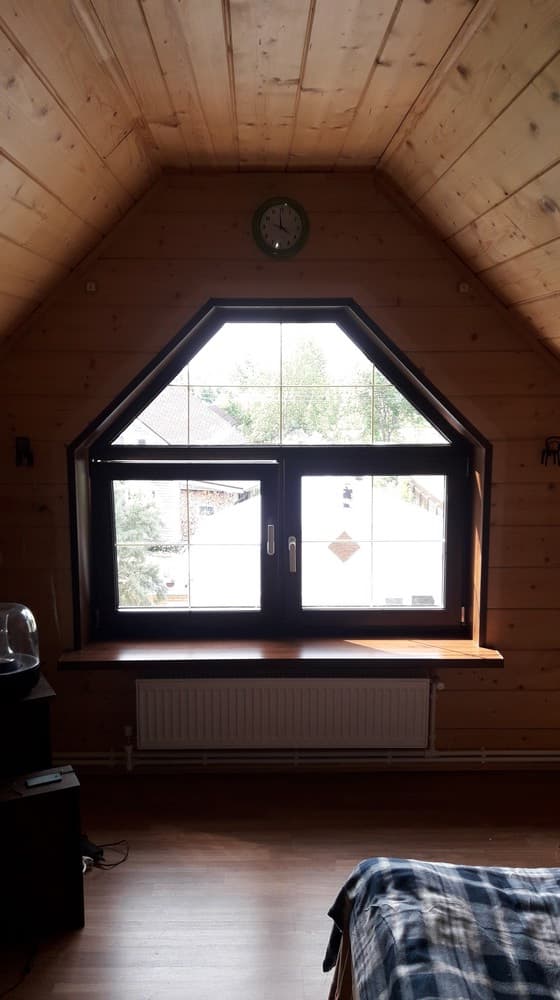 Выполненные работы: Остекление второго этажа загородного дома, Установлено 9 окон, Некоторые изделия покрыты ламинационной пленкой, профильная система REHAU Delight, Фурнитура Siegenia Titan AF