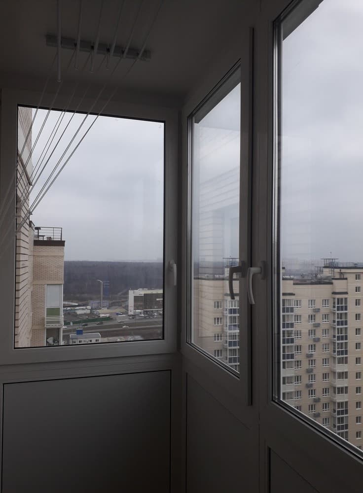 Выполненные работы: Демонтаж старых окон, Остекление лоджии профилем REHAU Intelio 80, Утепление и отделка балкона, Проводка электрики и теплого пола, Установка шкафов
