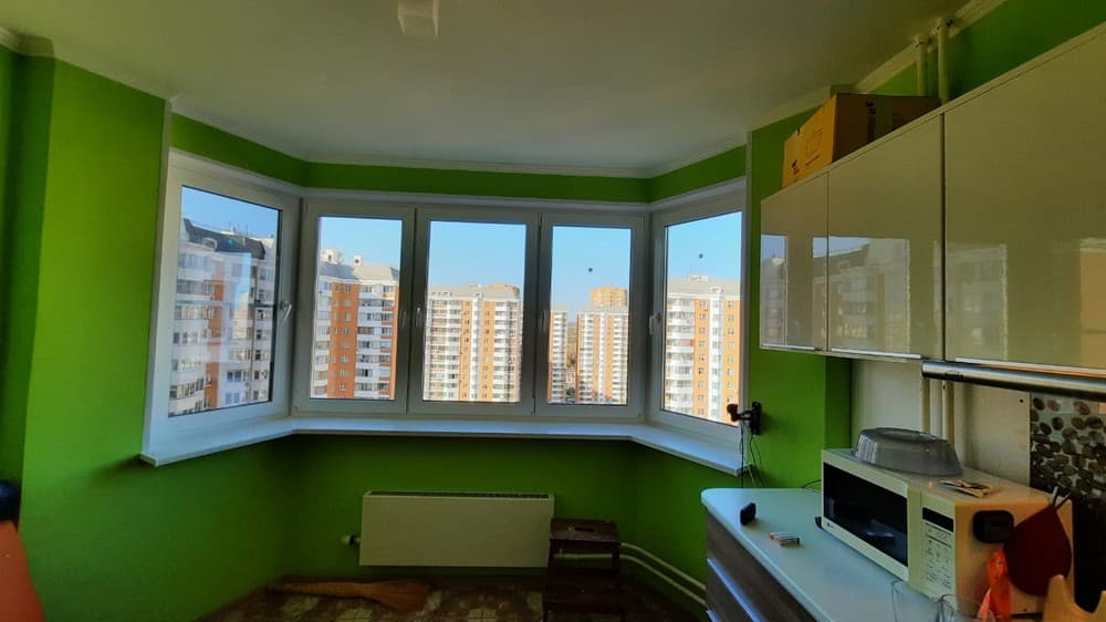 Выполненные работы: Демонтаж старых конструкций, Установка эркерного окна из профиля REHAU Grazio, Внутренняя отделка откосов, Вывоз мусора