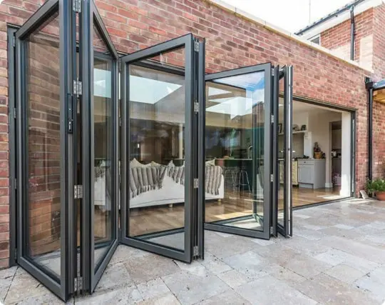 • Теплое остекление. Складные системы дверей не пропускают сквозняки, влагу и помогают поддерживать комфортную температуру в помещении, что повышает их энергоэффективность.