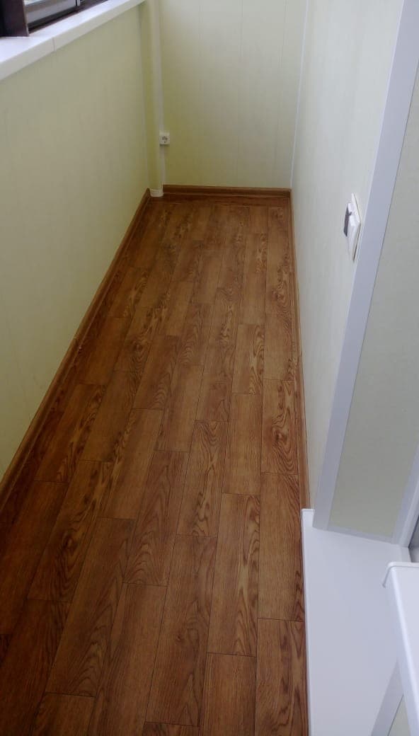 Выполненные работы: Остекление лоджии профилем REHAU Grazio, Утепление и отделка ламинированными панелями, Проводка электрики и установка светильников, Вывоз мусора