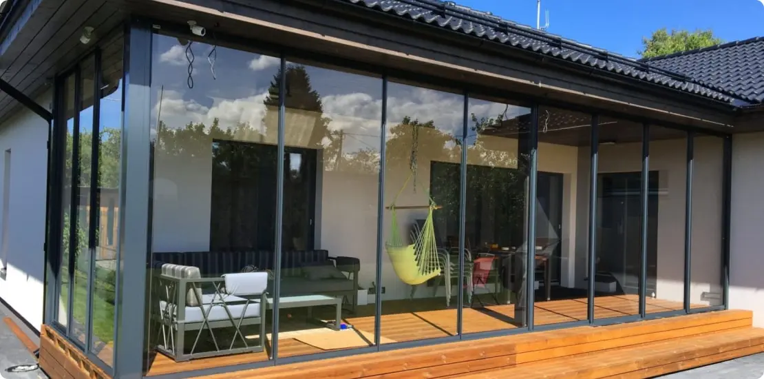 - С раздвижным, наиболее удобным для террас механизмом открывания/закрывания (по желанию можем интегрировать поворотный или поворотно-откидной), а также с другой фурнитурой одного из лучших мировых брендов Roto NT;