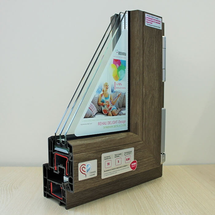 Улучшенная конструкция профиля обеспечивает поступление света в объеме на 10% больше по сравнению со стандартными системами. Профиль Delight отличается красивыми плавными линиями, рельефным штапиком, подходит для установки в частных и высотных домах.